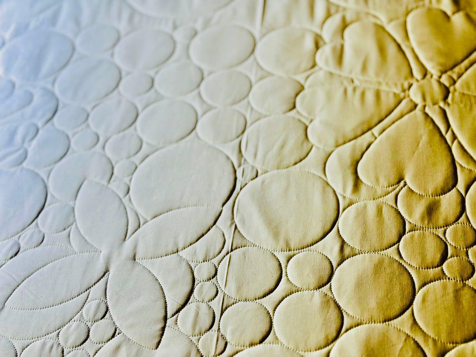 First we fill your quilt with all natural batting, most often from Winline Textiles because of their exceptional product, free from plastics or chemicals found in other brands.